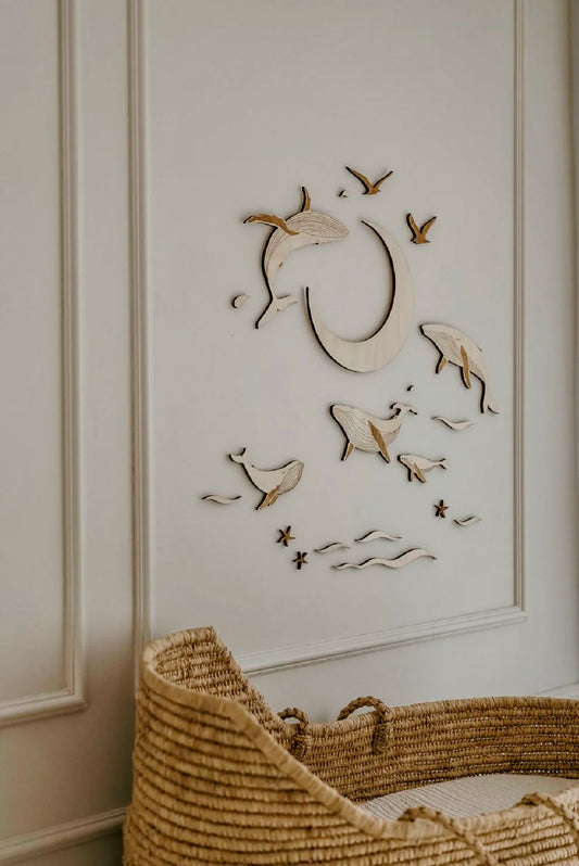 Set décoration en bois - Thème baleine