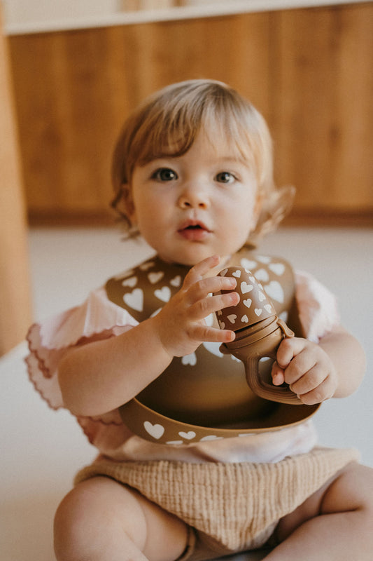 Bavoir en silicone - Fall in love Taupe