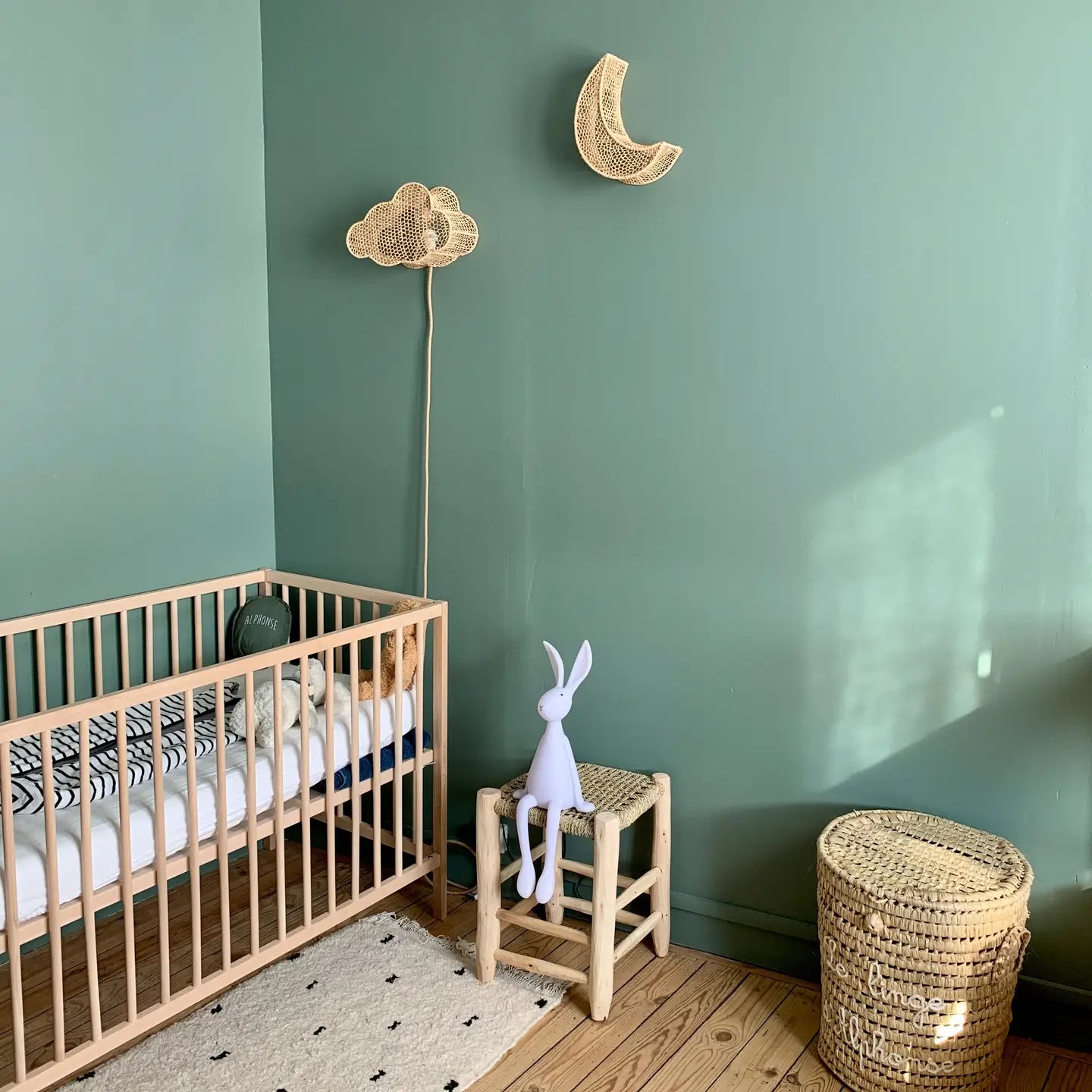La douceur naturelle du raphia et la réalisation artisanale rendent le produit authentique. Le tressage lui apporte une lumière douce dans le chambre de votre petit bout.