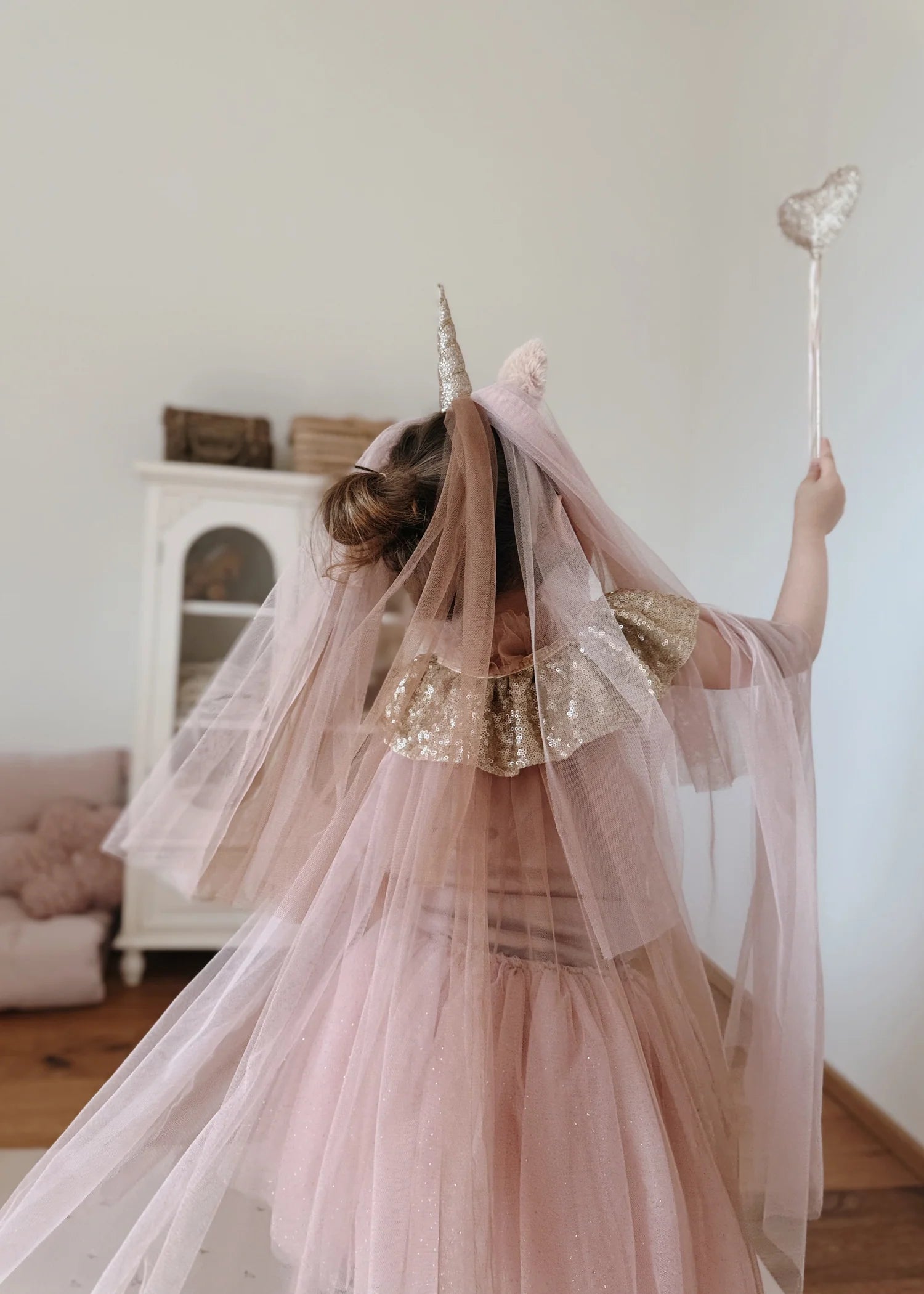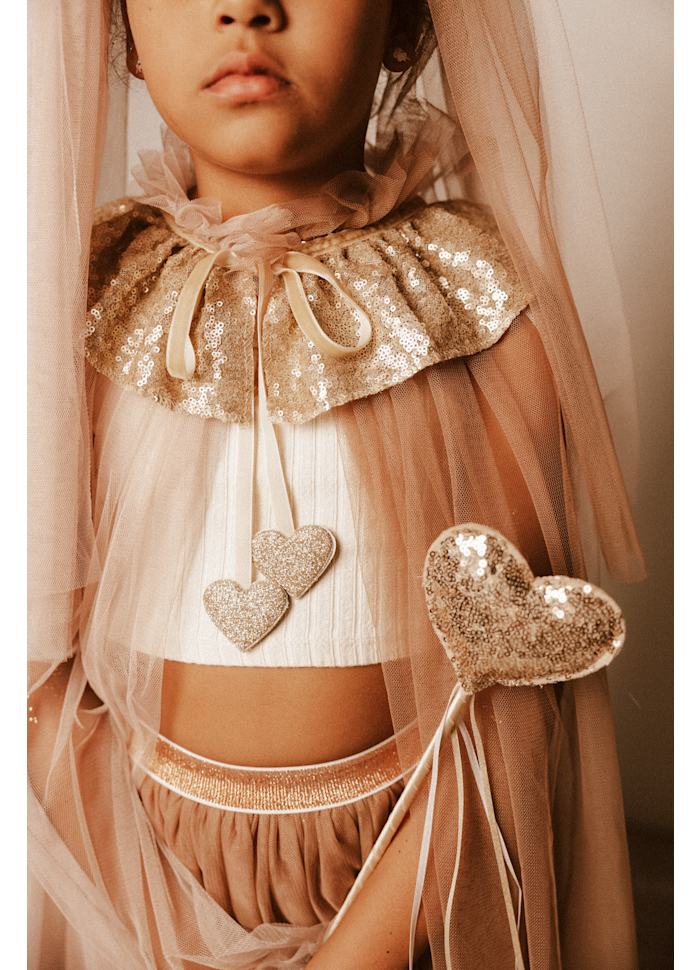 Cette adorable cape avec son col recouvert de sequins scintillants de chez Mrs Ertha sera parfaite pour les petites princesses en quête de magie. Vous pouvez également l'accompagner d'une couronne et d'une baguette magique pour plus de rêve.