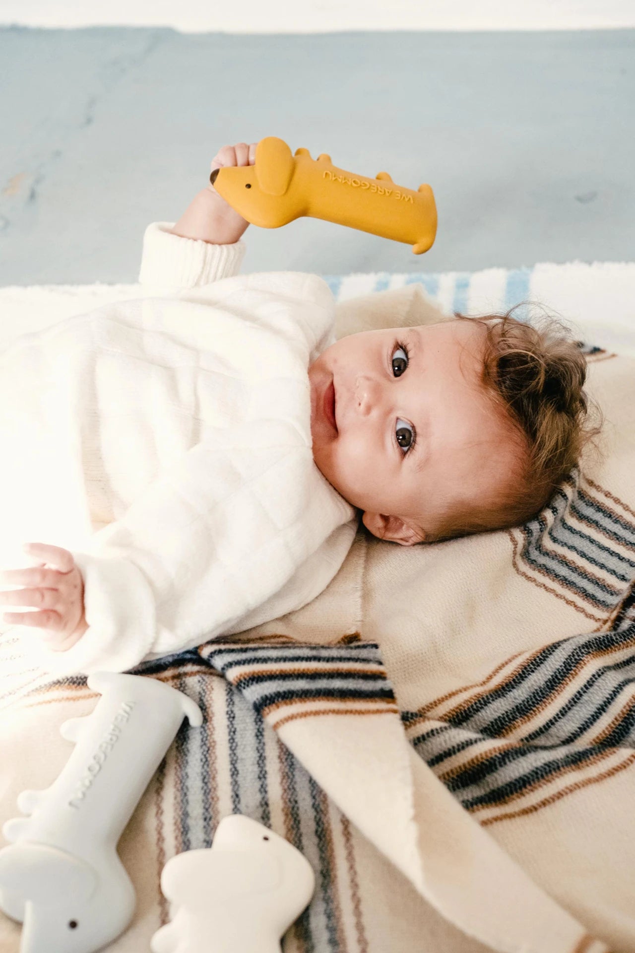 Comme hochet de dentition original, jouet de bain ou encore comme petit compagnon à apporter partout, découvrez ce petit chien We Are Gommu.