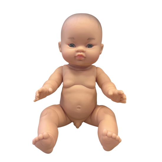 Son petit + ? Confectionné à partir de vinyle garanti sans phtalates, ce poupon pourra aller dans le bain avec votre enfant.